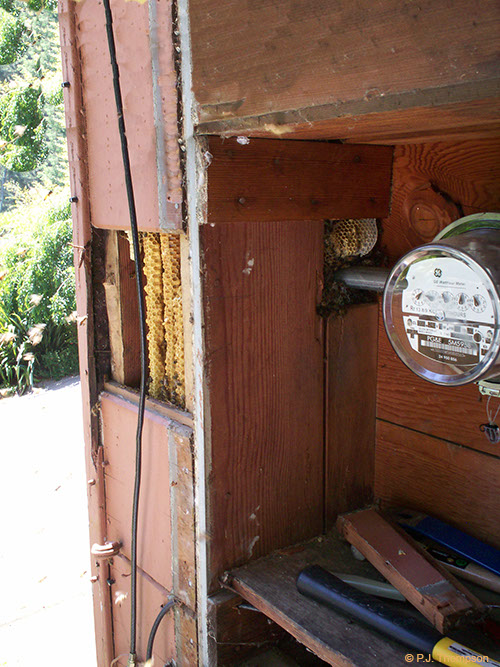 To permanently solve the problem, the entire nest and the bees must be removed and the entrance resealed. It is not enough to simply spray inside the nest entrance with an insecticide, because after the insecticide degrades the cavity and combs are attractive to future swarms of bees.